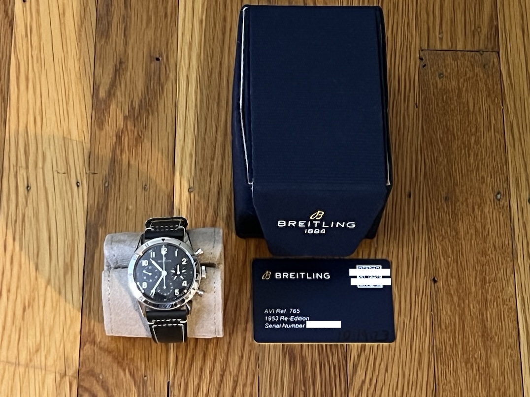 Breitling Classic AVI Ref. 765 1953 Re-Edition 41mm Manual Wind 70 hour Power Reserve Box Papers Card
