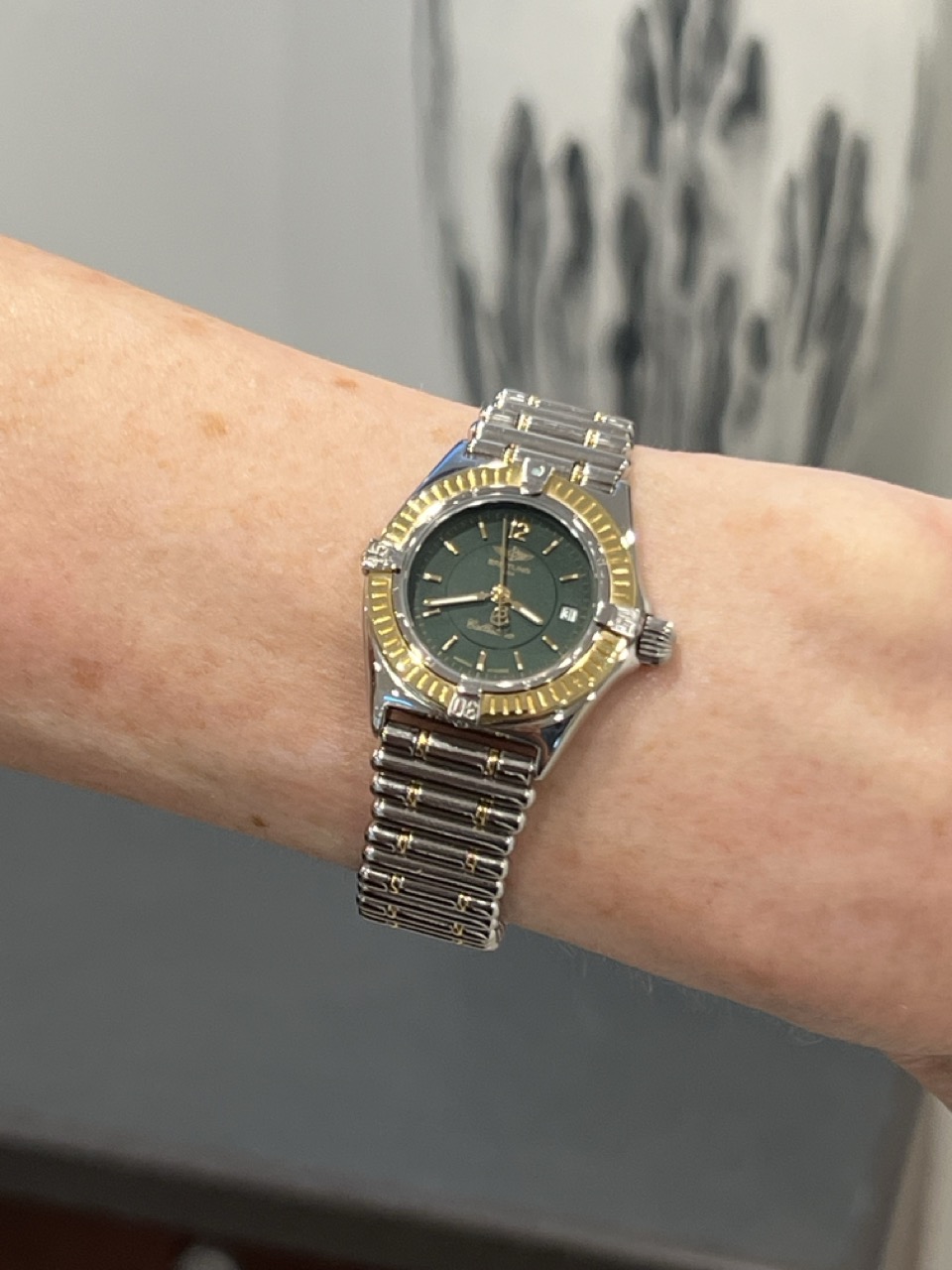 Breitling Lady Callistiono 18k Yellow Gold and Steel 28mm SuperQuartz Green Dial and 18k Gold Bezel D52044