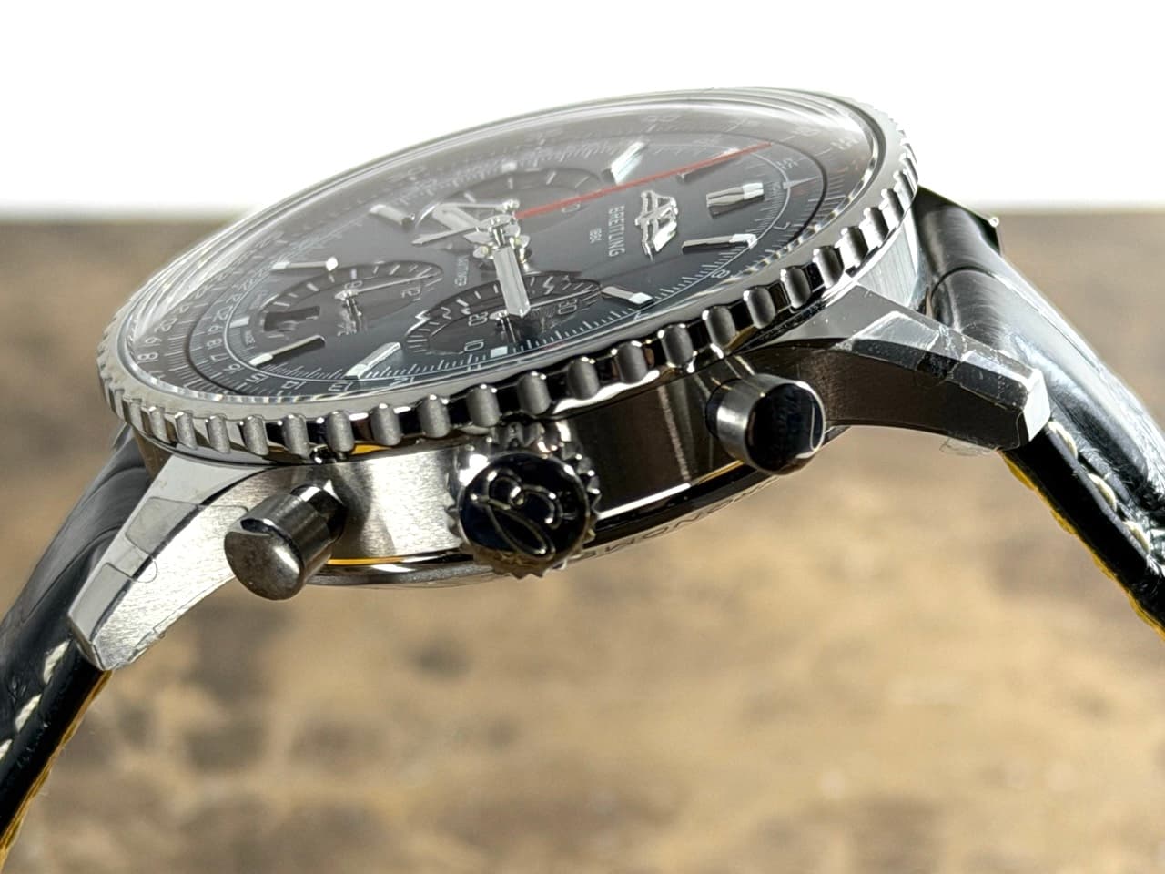 Strap – Breitling Black Leather with Deployed Buckle