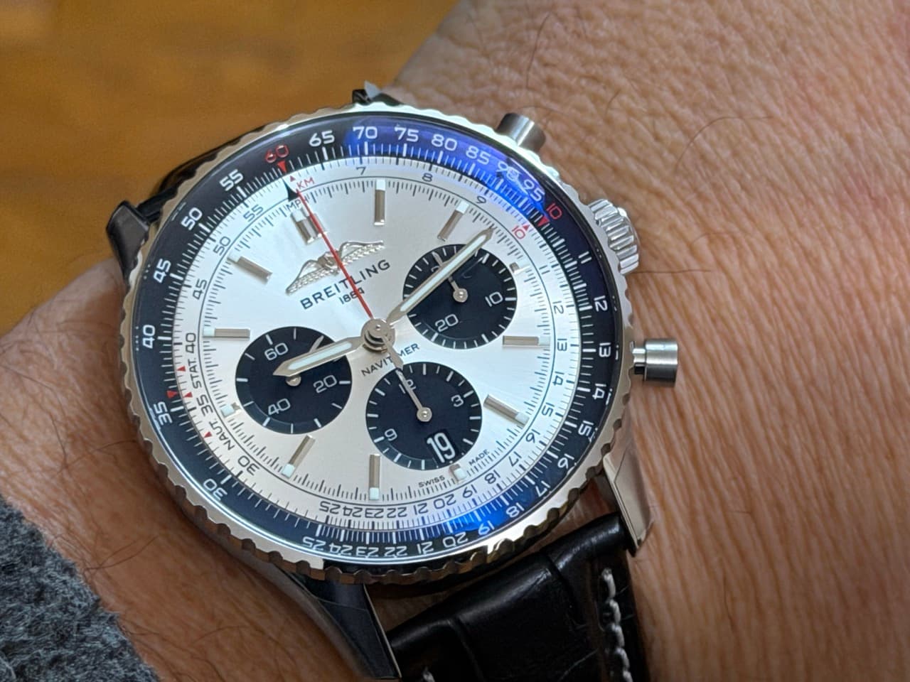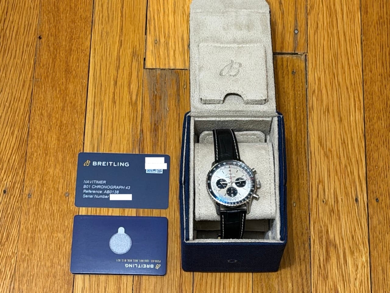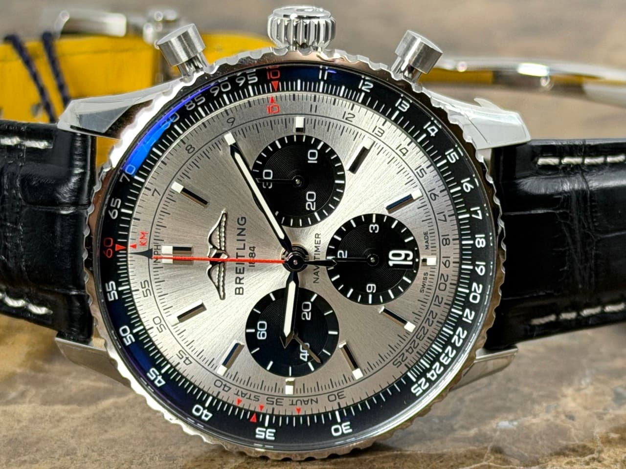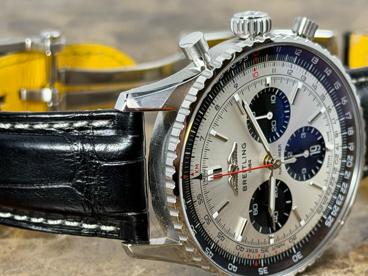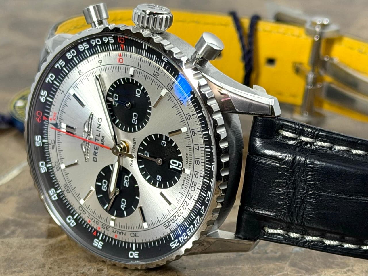BREITLING Navitimer B01 Chronograph 43 Automatic Silver Black with Box Papers Card AB0138241G1P1 Never Worn
