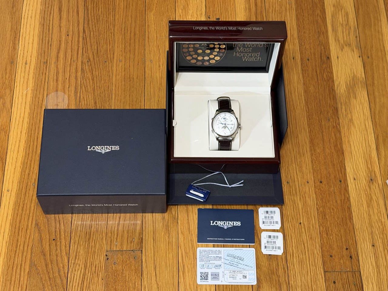 Longines Master Collection Retrograde Day Date with Moon Phase Automatic 41mm with Box Papers Card L2.738.4.71.3 or L27384713