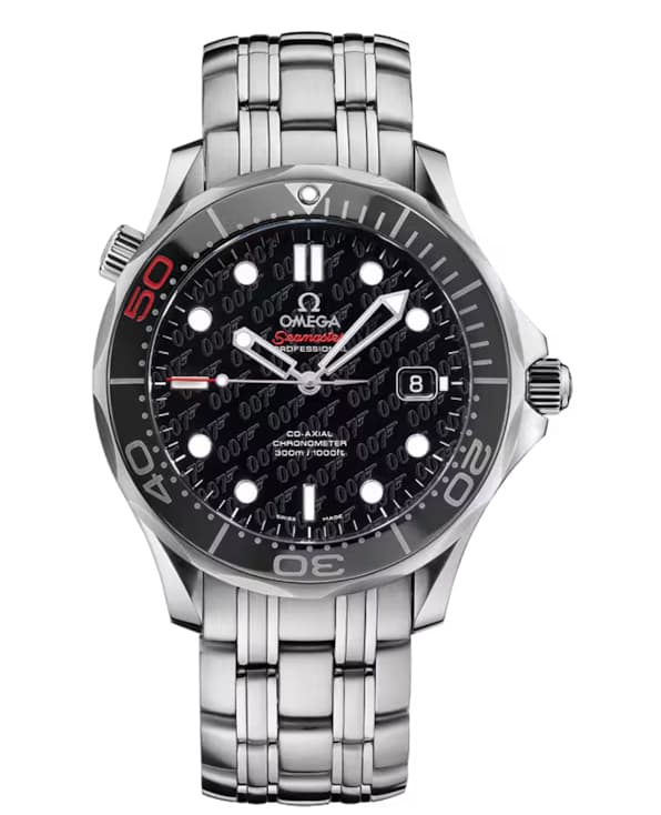 Dial – Black Laser Cut ceramic with Red Accents and features laser-engraved 007