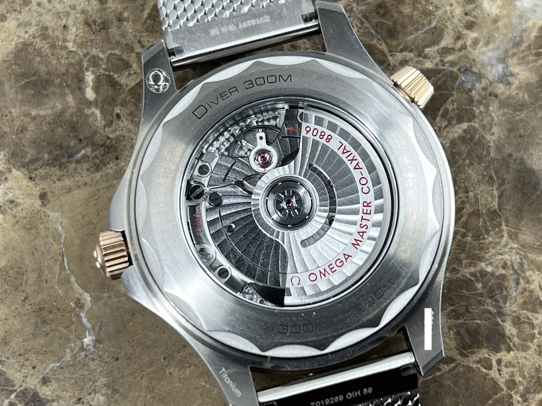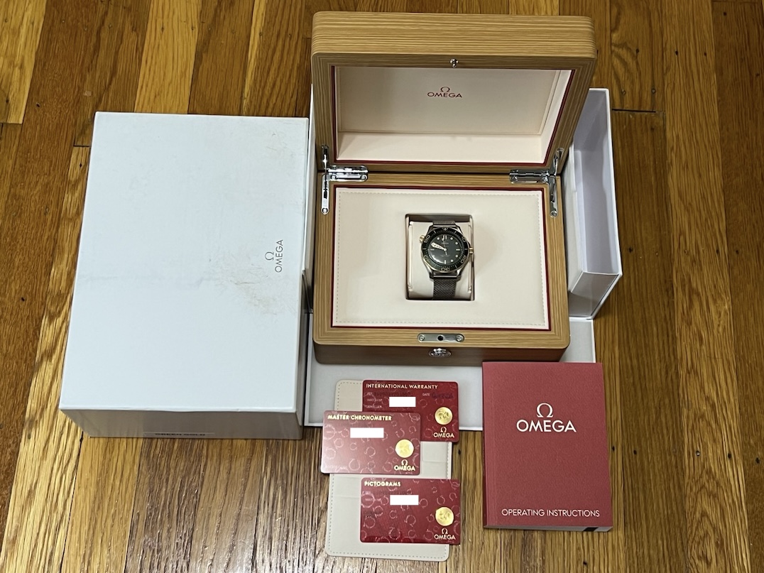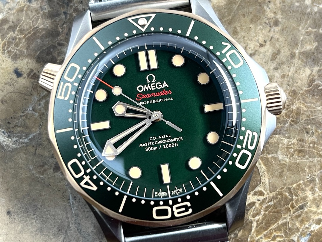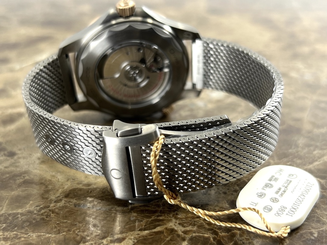 Omega Seamaster Diver 300M Automatic 42mm Green Dial Titanium Bronze Gold Mesh Bracelet Box Papers Cards 210.90.42.20.10.001 Year 2025