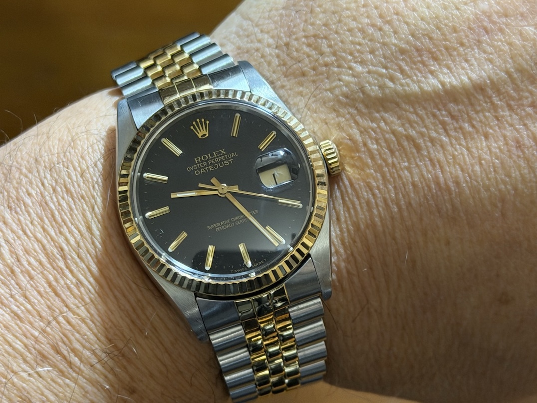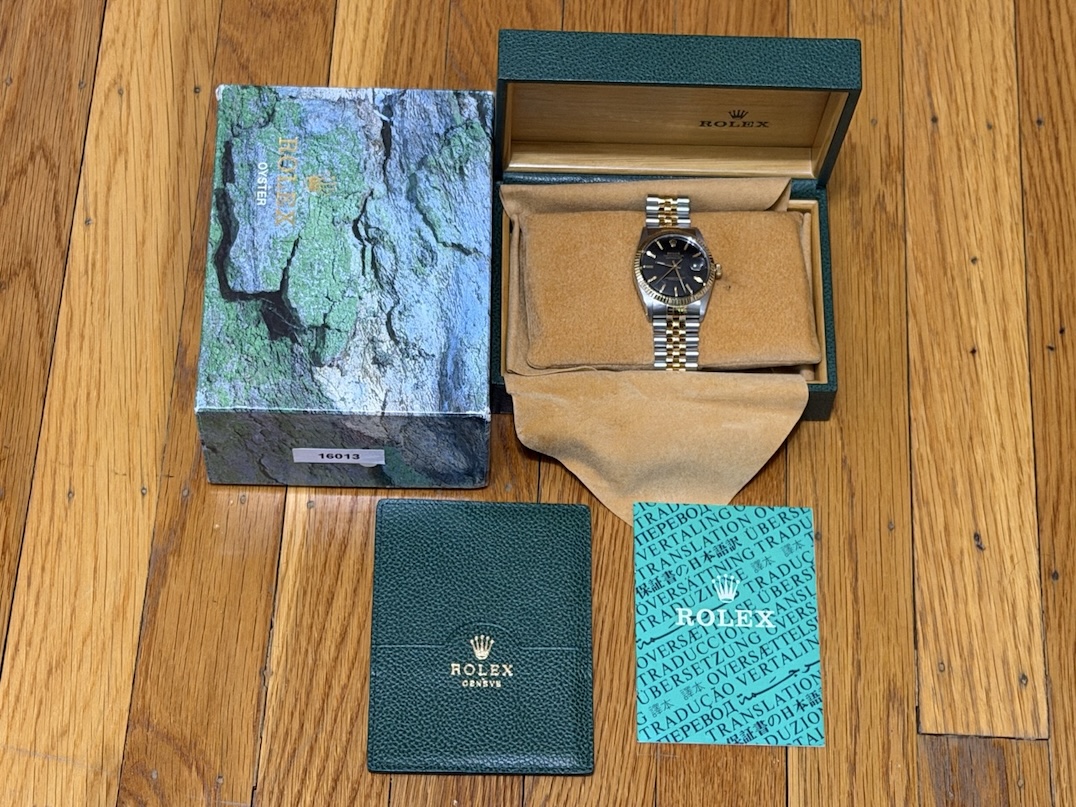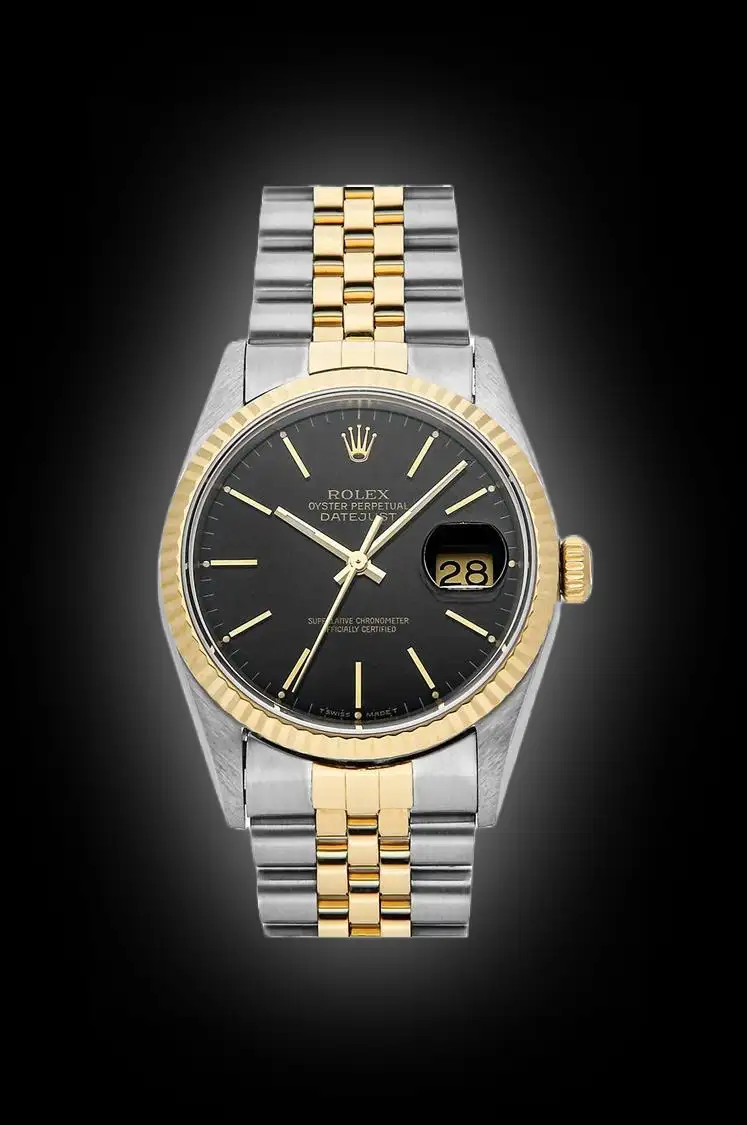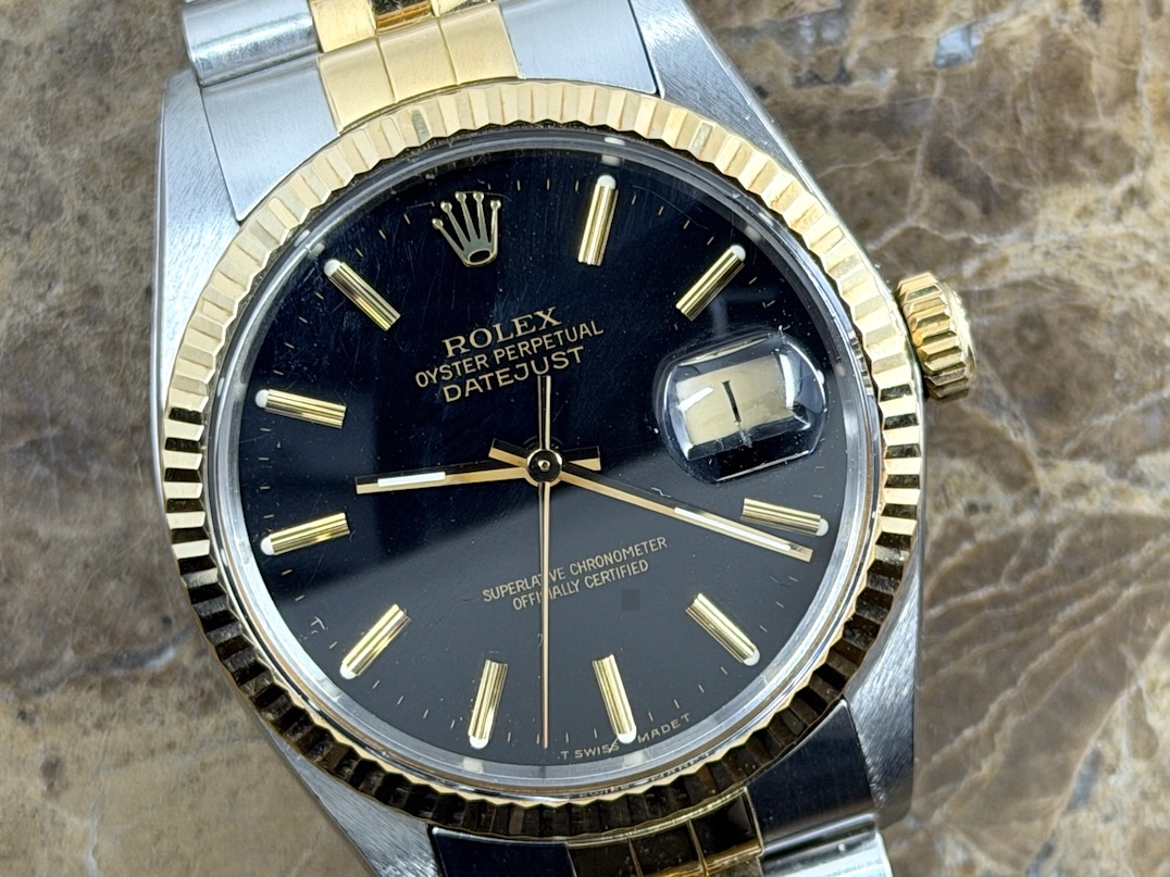 Rolex Datejust 36 18k Gold / Steel Automatic Jubilee Bracelet Black Dial with Rolex Box 16013