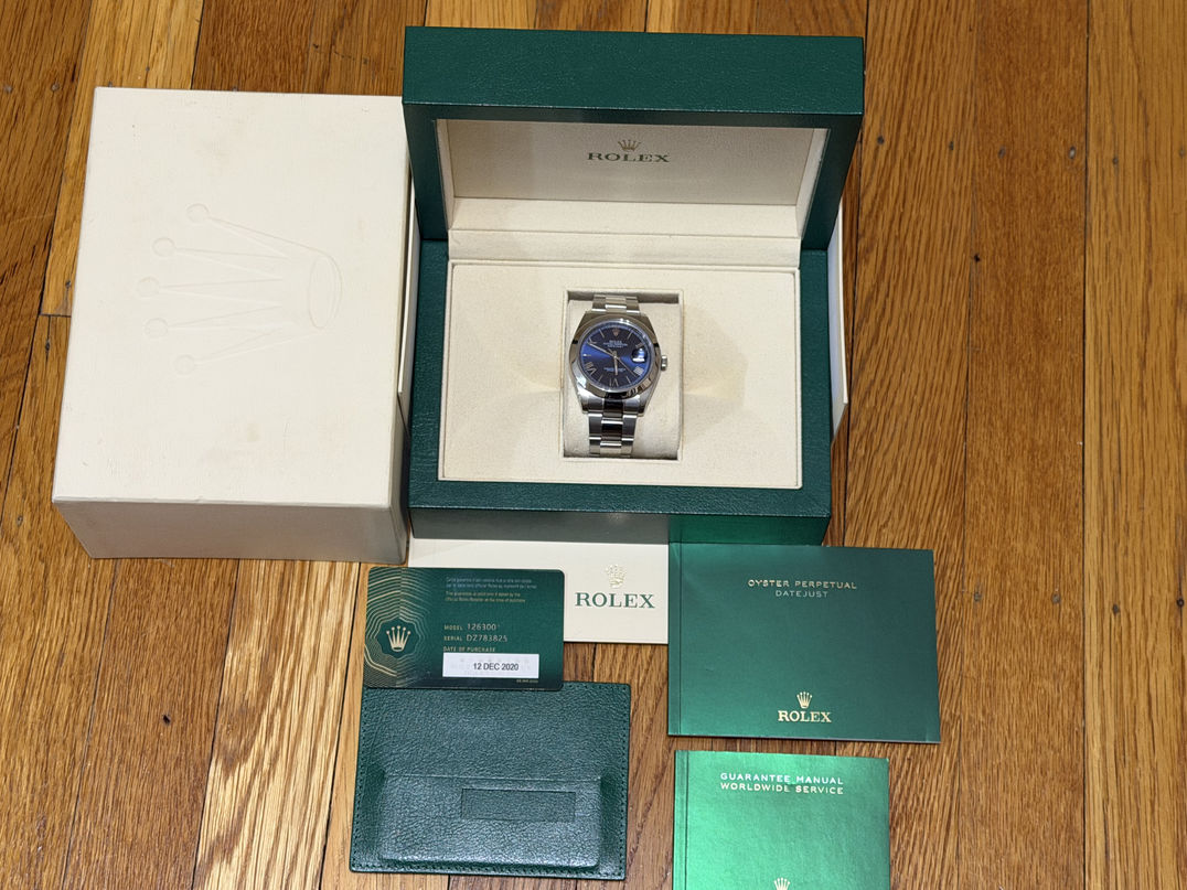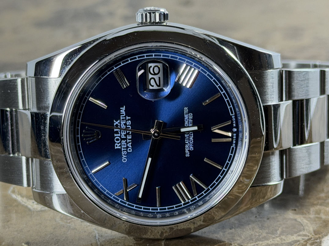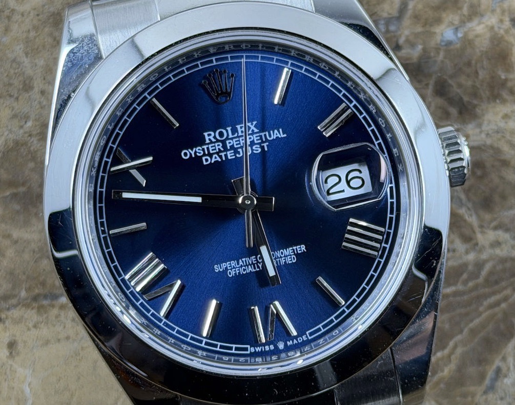 Rolex Datejust 41 Automatic with Blue Dial Oyster Bracelet model 126300 with Box Papers Card