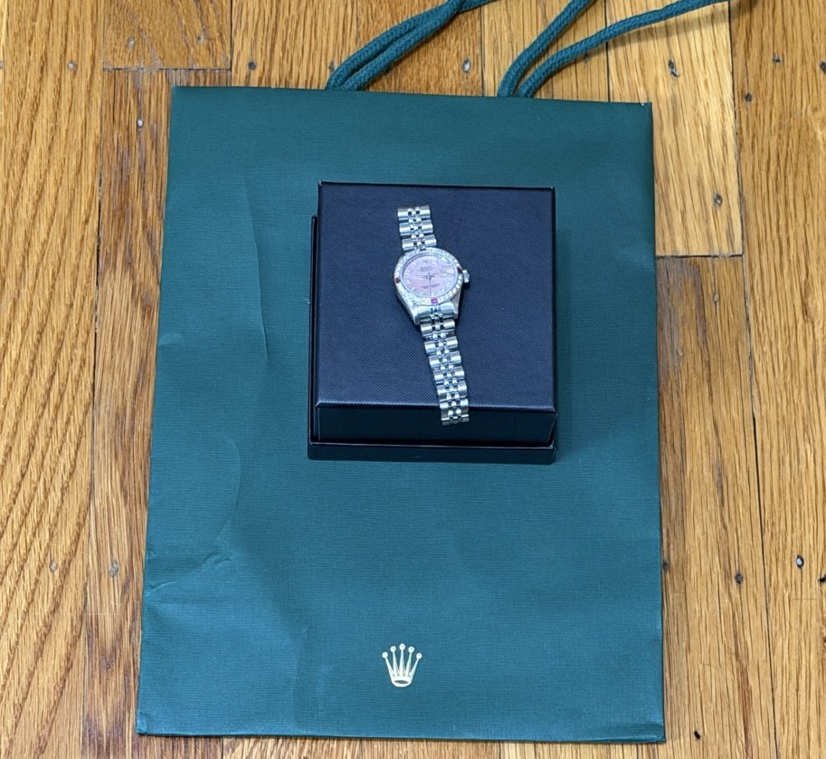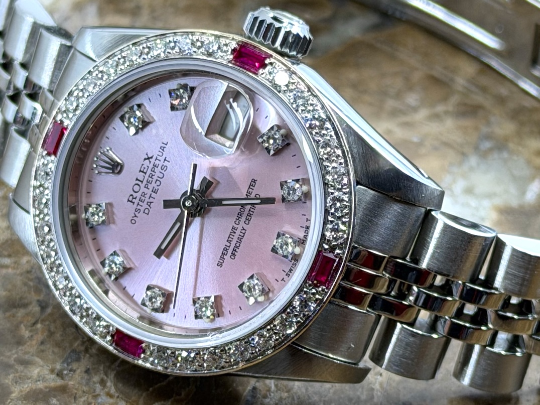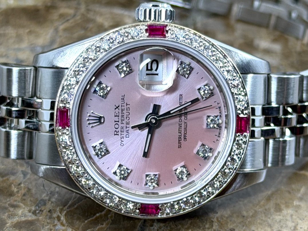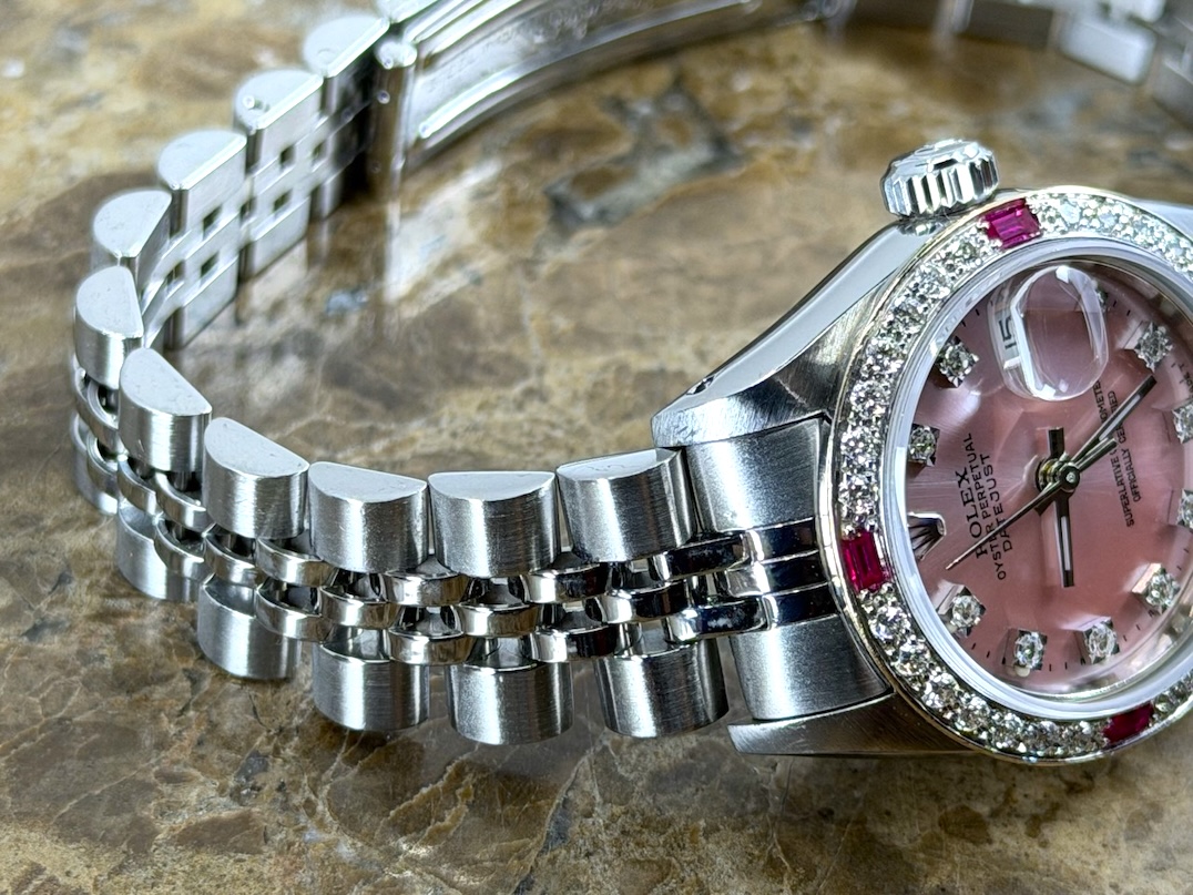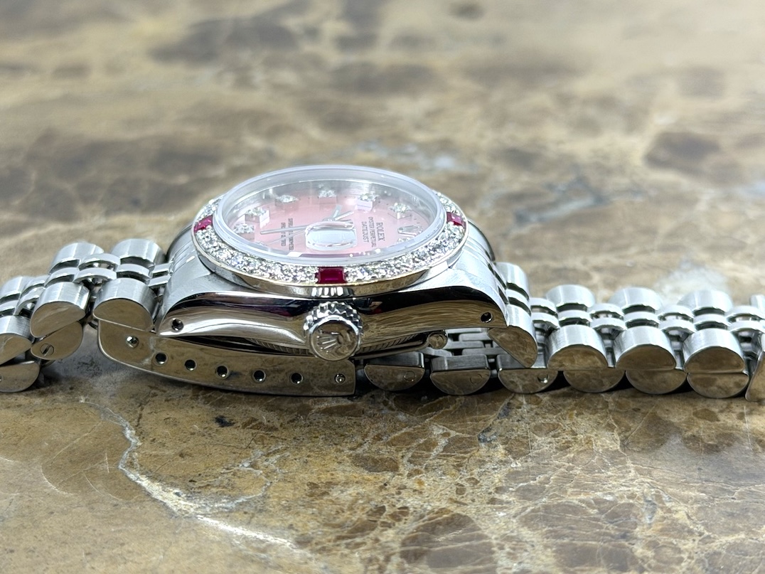 Rolex Lady Datejust 26mm Automatic Steel Pink Diamond Dial Diamond Bezel with Jubilee Bracelet model 69174 with Rolex Gift Bag