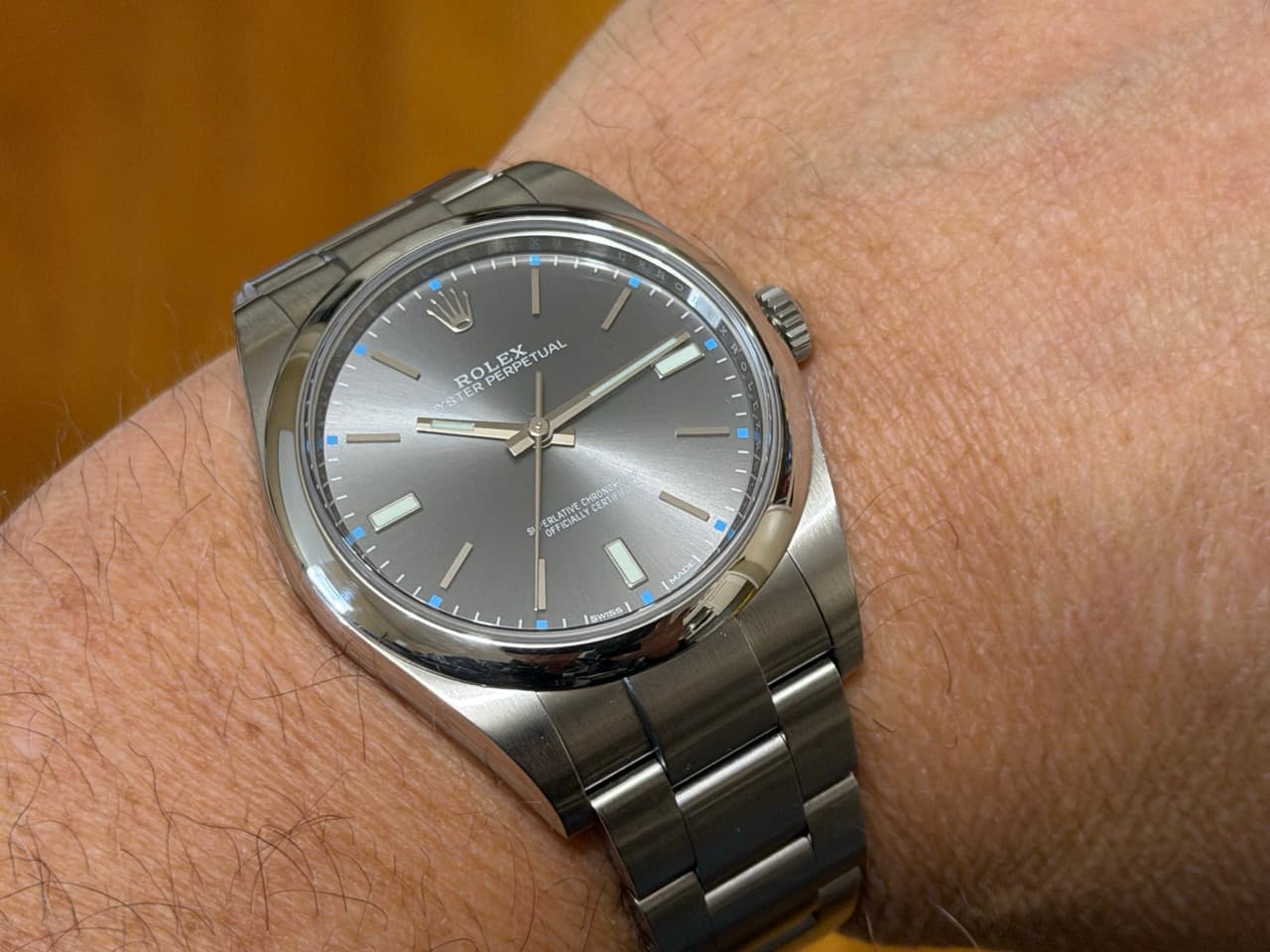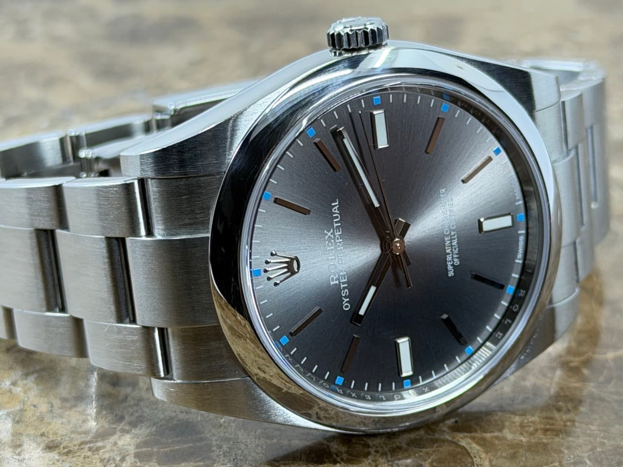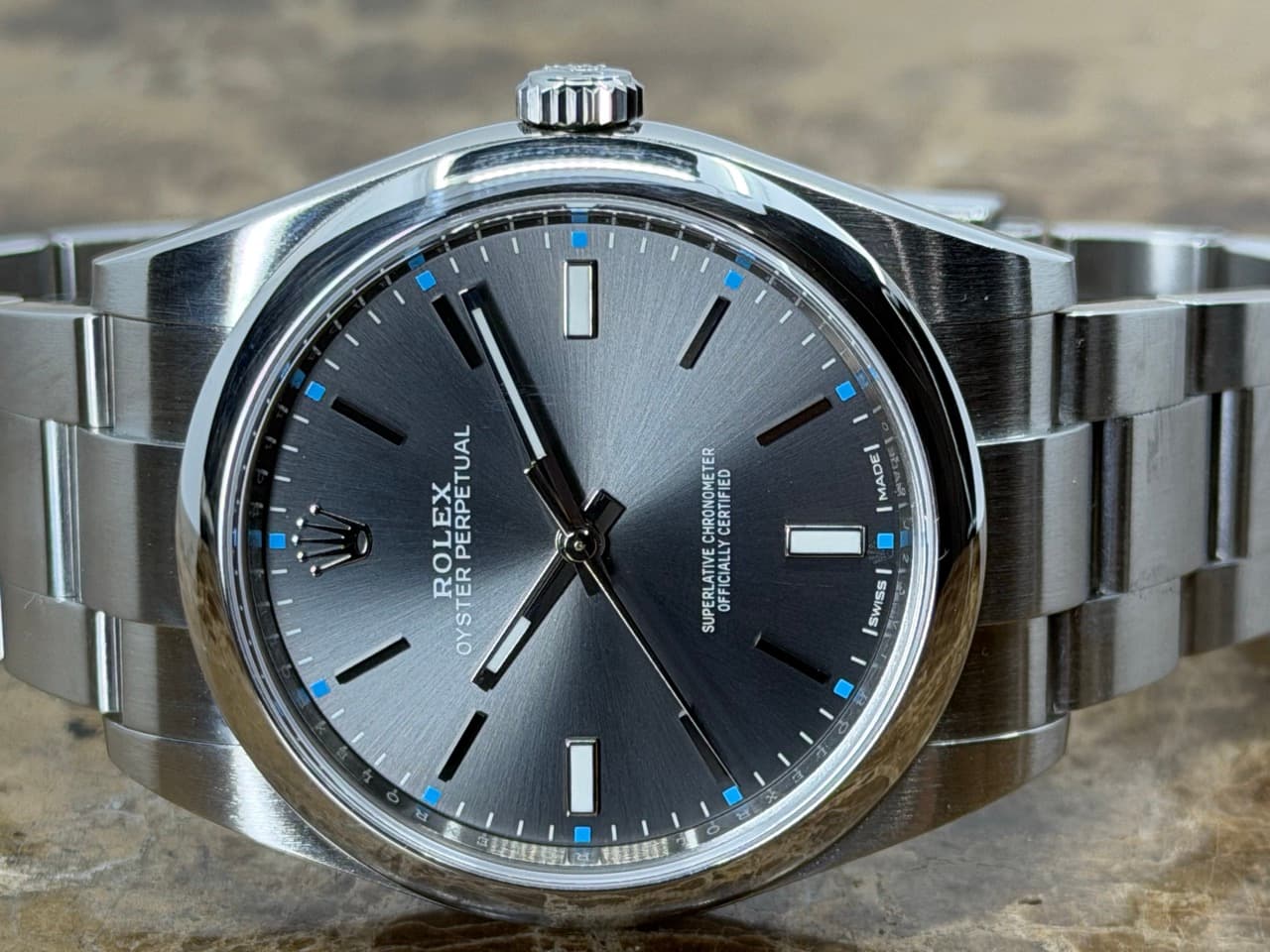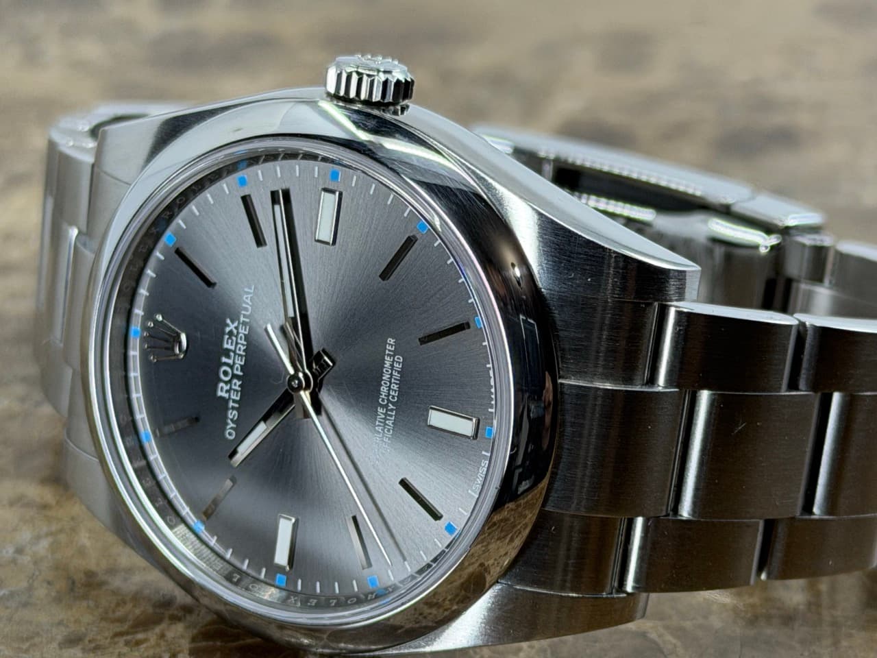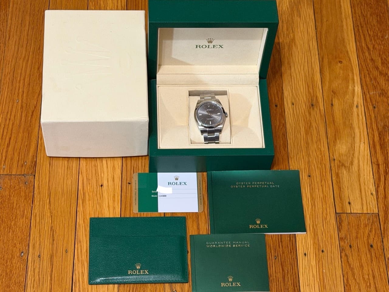 Rolex Oyster Perpetual 39mm ref 114300 Rhodium Silver Index Box Papers MINT