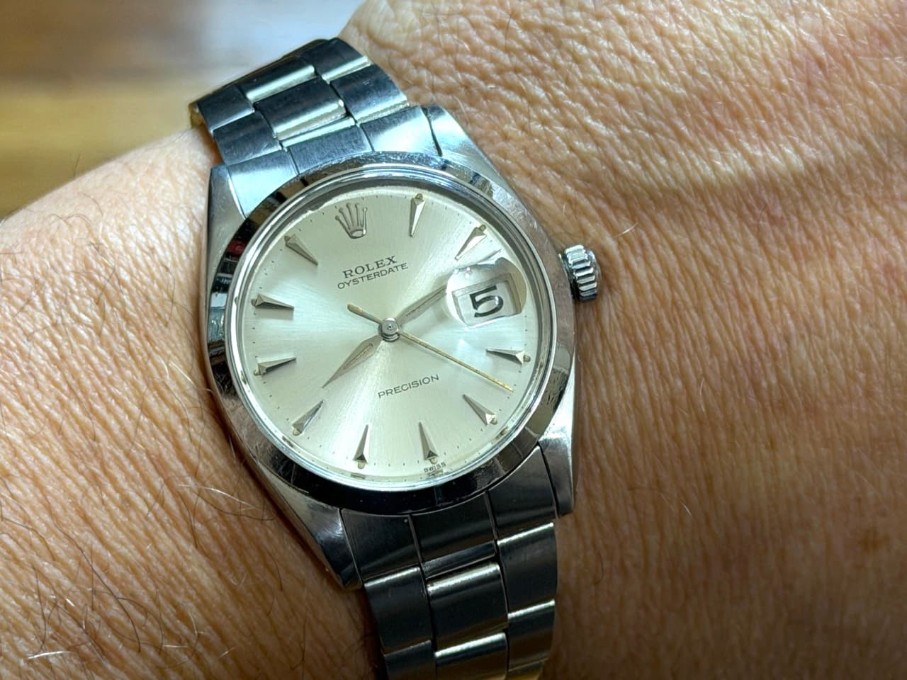 Rolex Oysterdate Precision 34mm Manual Wind Silver Dial model 6694 Vintage