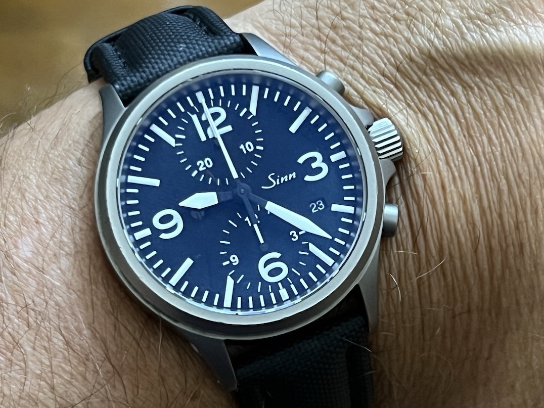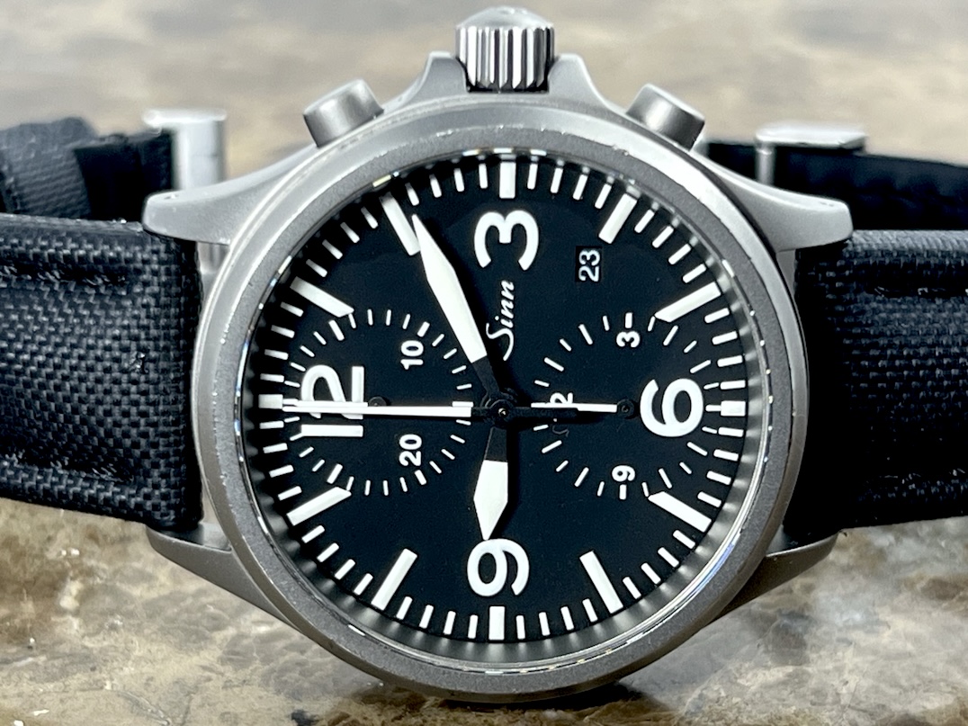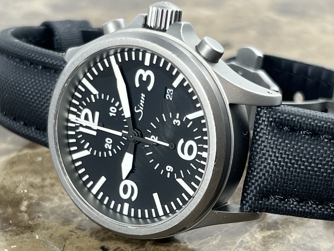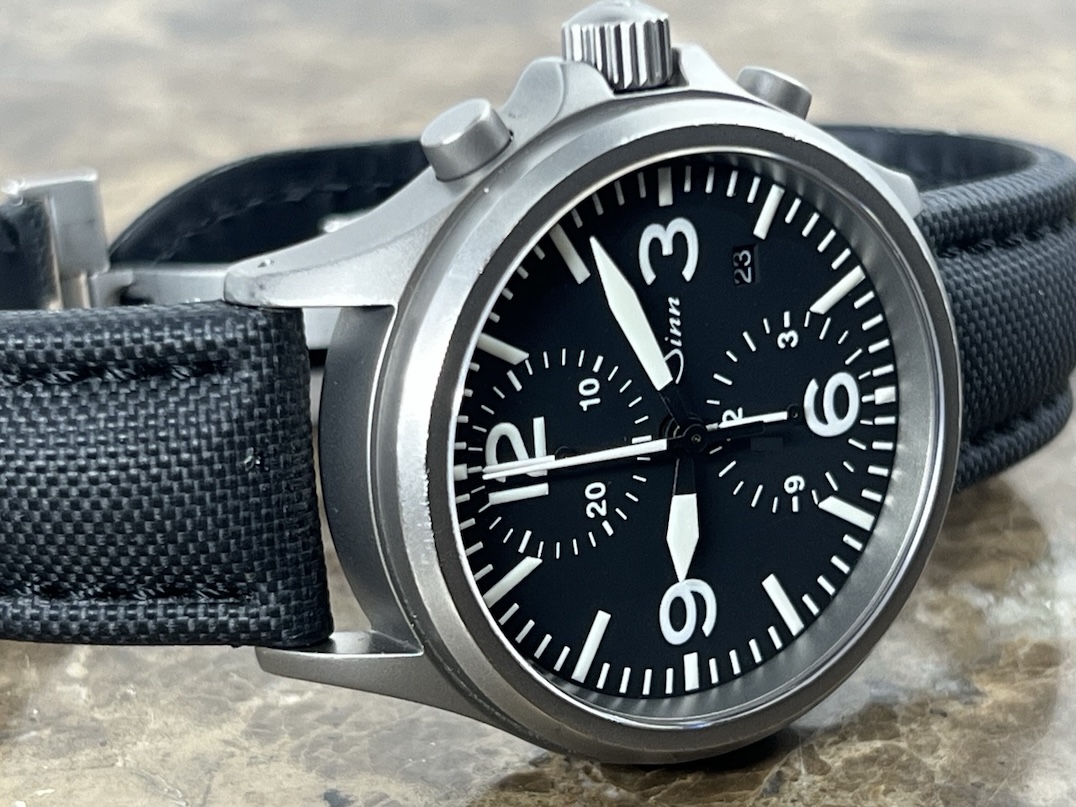 Sinn 756 Chronograph Tegimented 40mm Automatic on Strap with Deployed Buckle and Sinn Travel Box